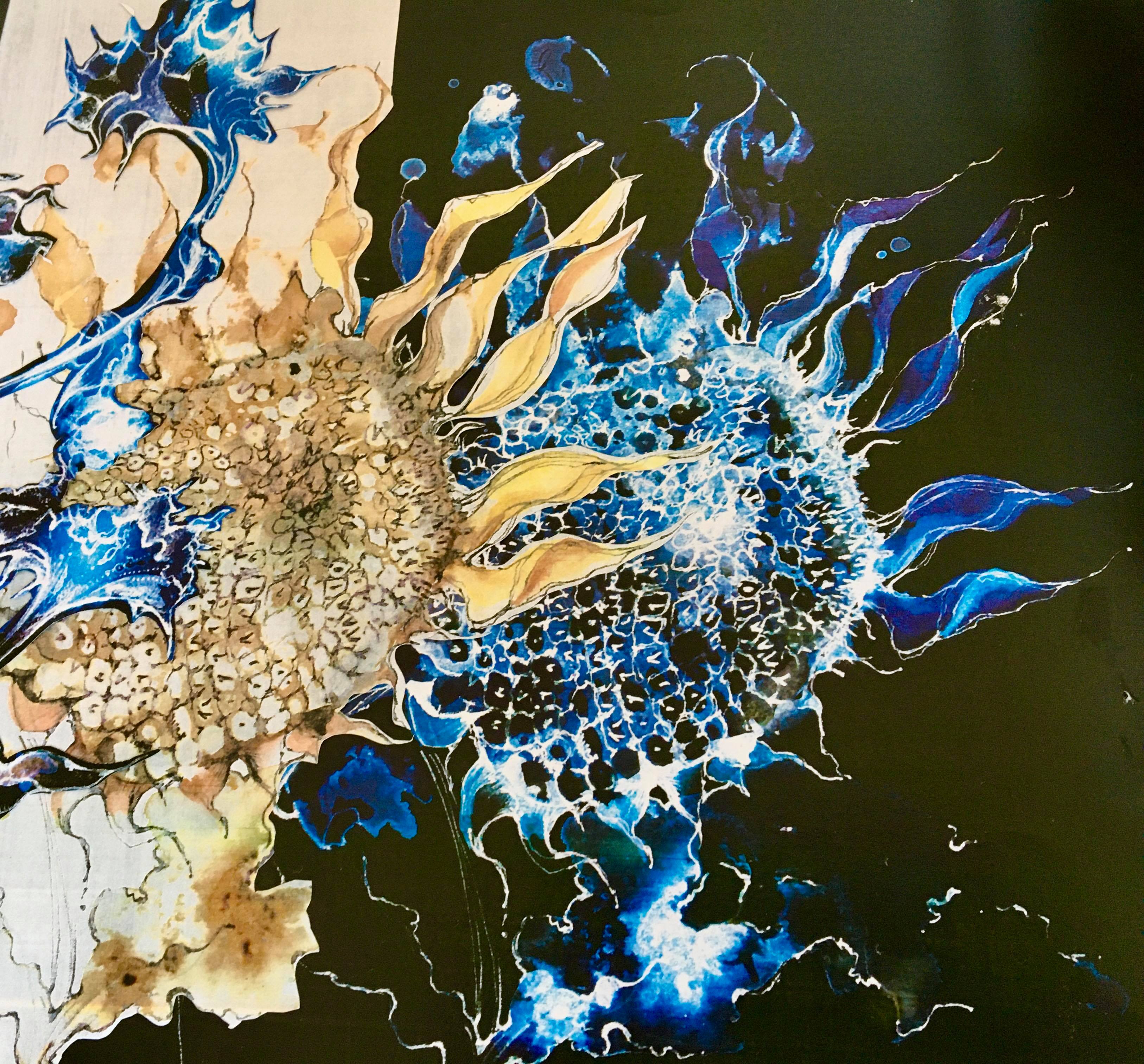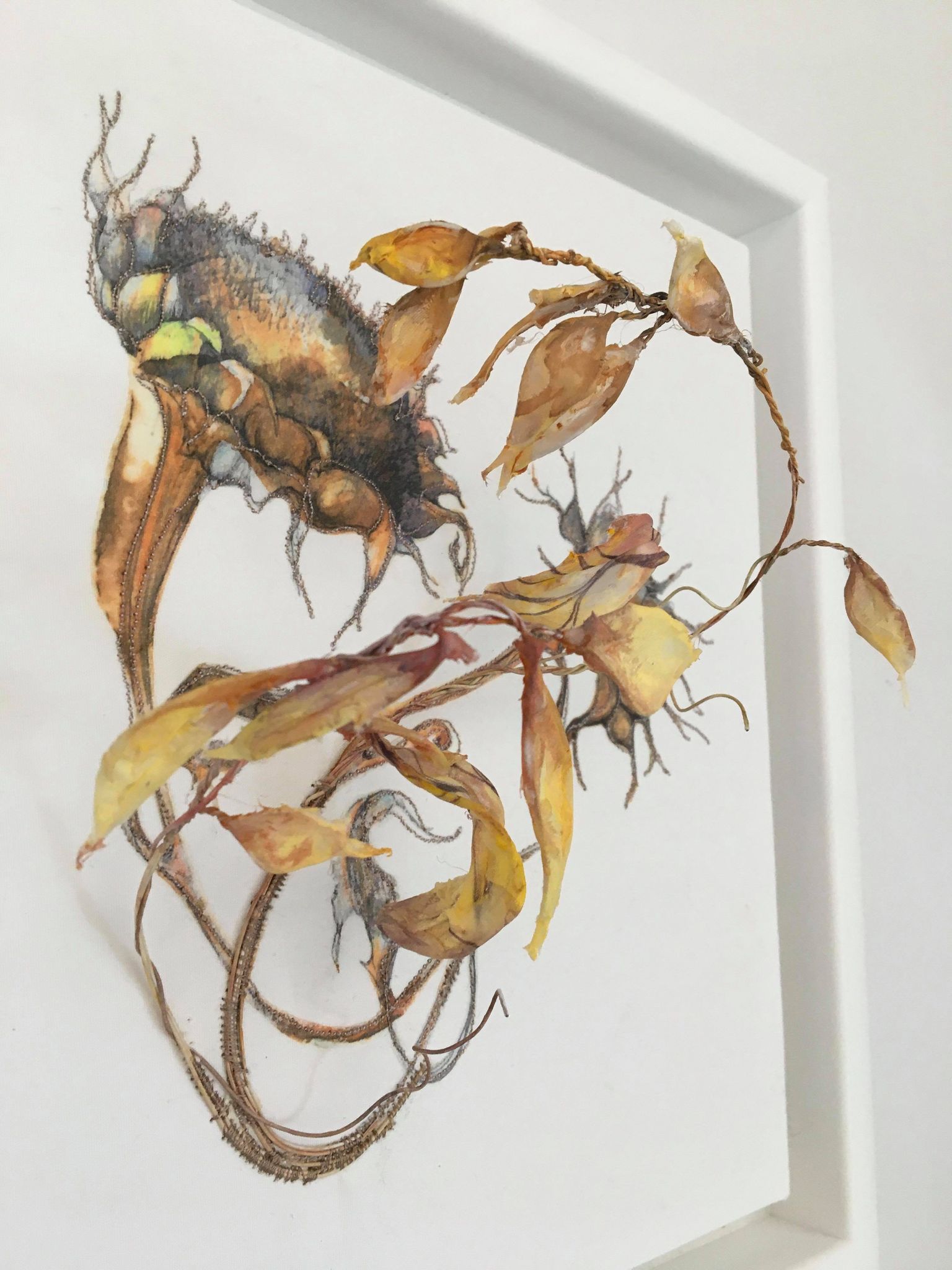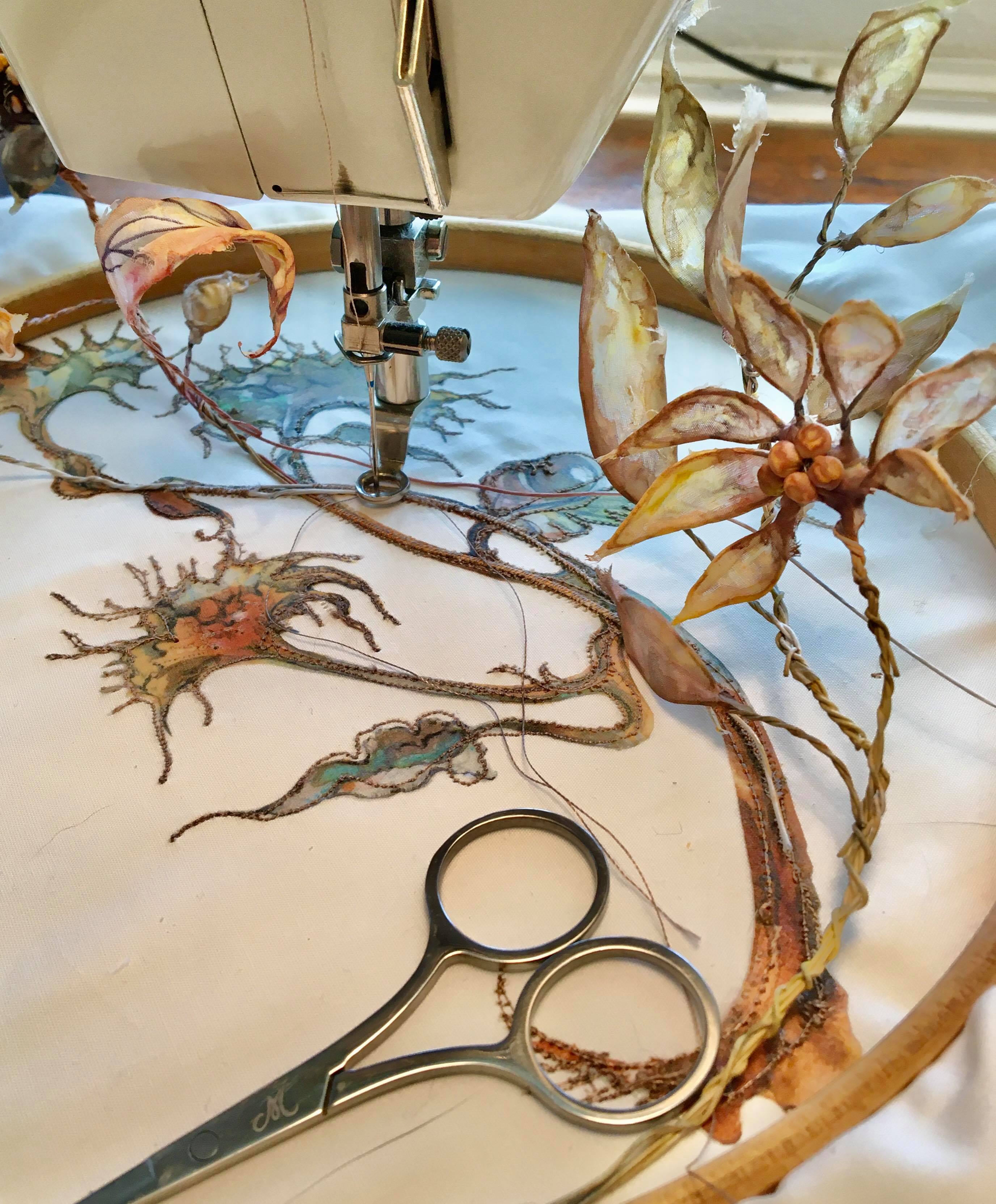 With a background in the textile industry initially and later 15 years as an Art and Design lecturer I am now self-employed. I am driven by an absolute love of painting and textiles. I enjoy creating detailed decorative multimedia textile outcomes that utilise illustration, free machine embroidery and 3D elements. I use sketchbooks as well as my pieces to tell stories or send messages to the viewer.