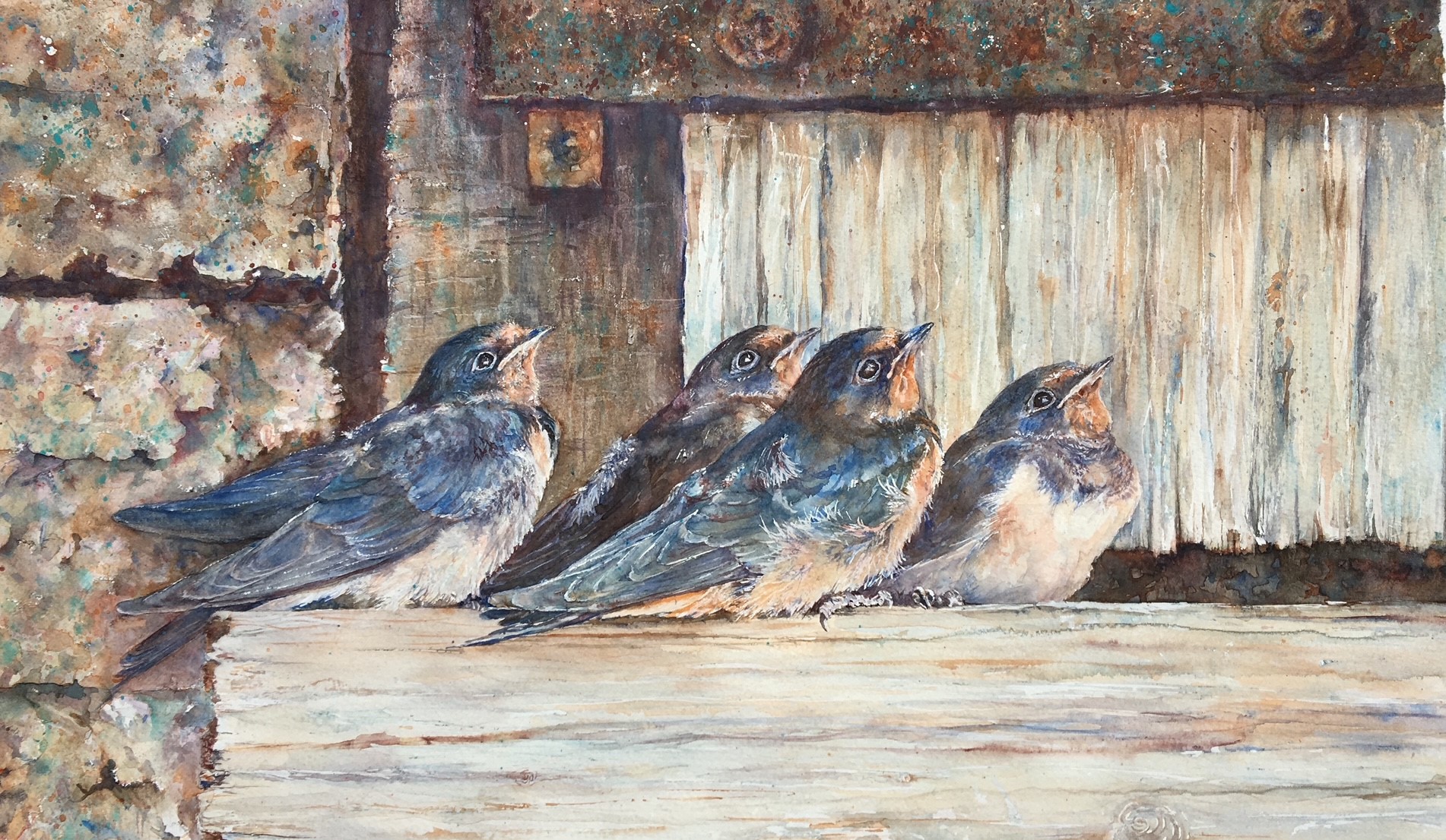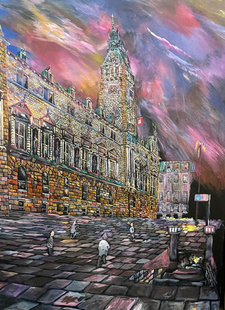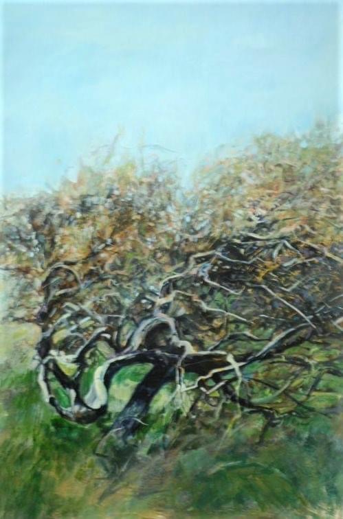 This painting has depth, energy and movement to the composition. The judges really liked he subject matter, the surface treatment and the colour palette especially the blue of the sky.