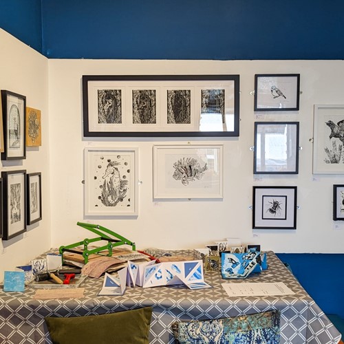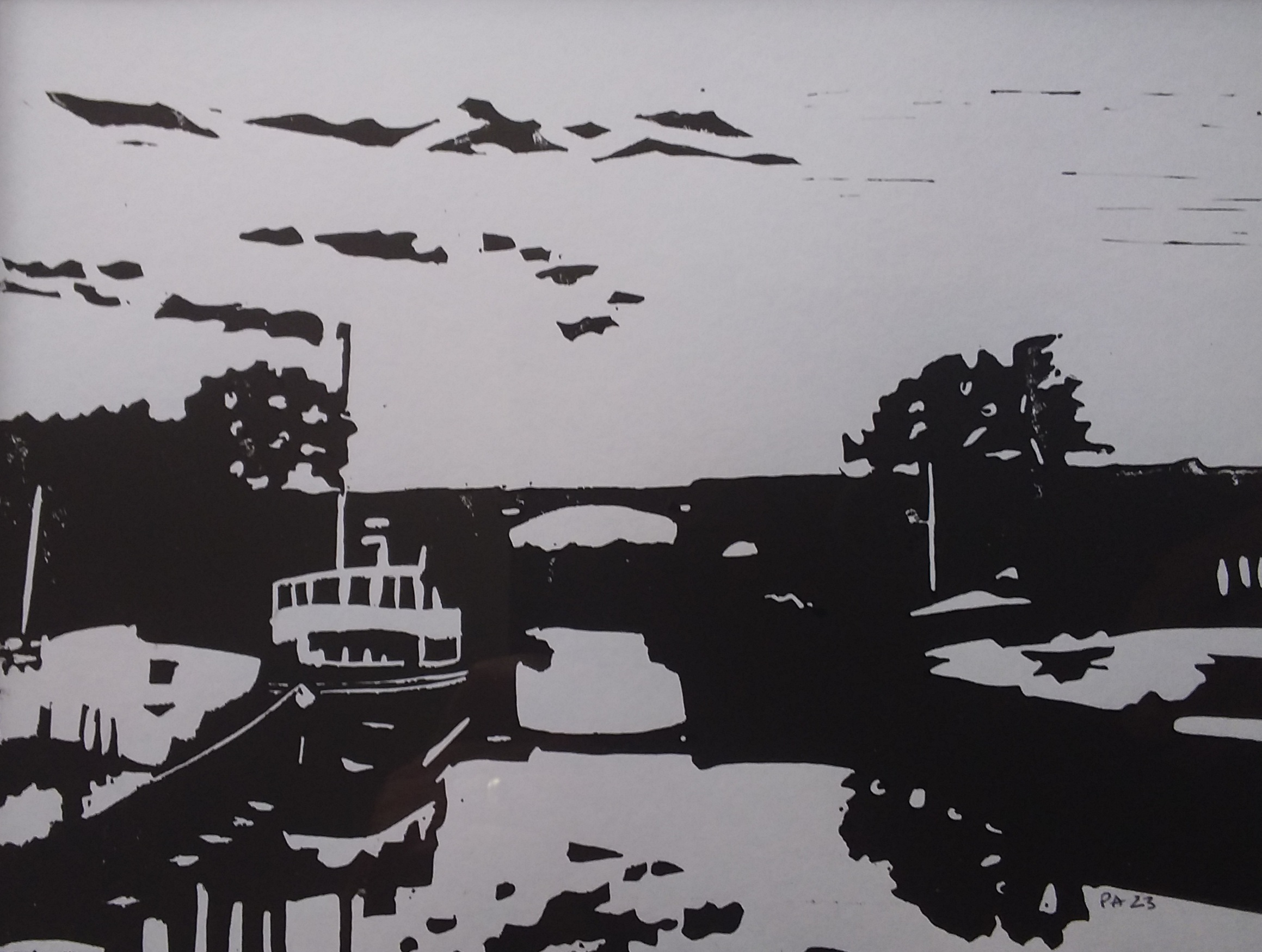 The Castle Park Print Club is a collection of 10 local artists that meet every Wednesday at the arts centre, to practice the art of printmaking. They produce linocuts, etchings, screen prints and gelli plate prints. The club has been in operation for a year and this is their first exhibition so it reflects a wide range of subject matter and interests. If you are interested in print making contact the club email applpainter@aol.com