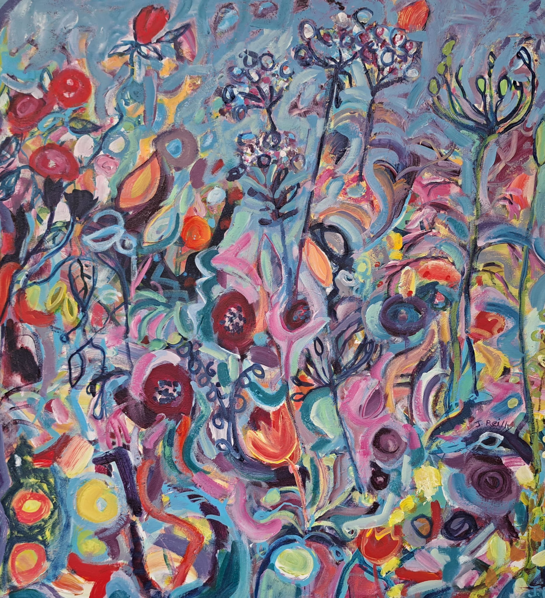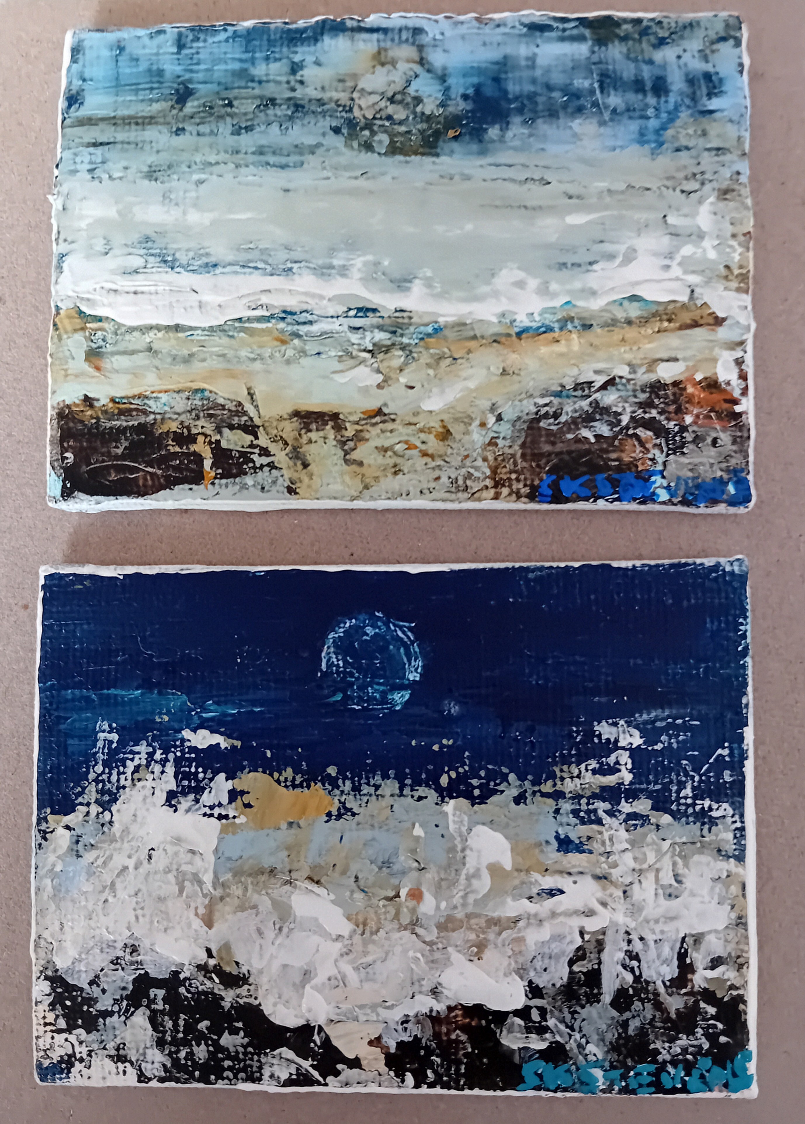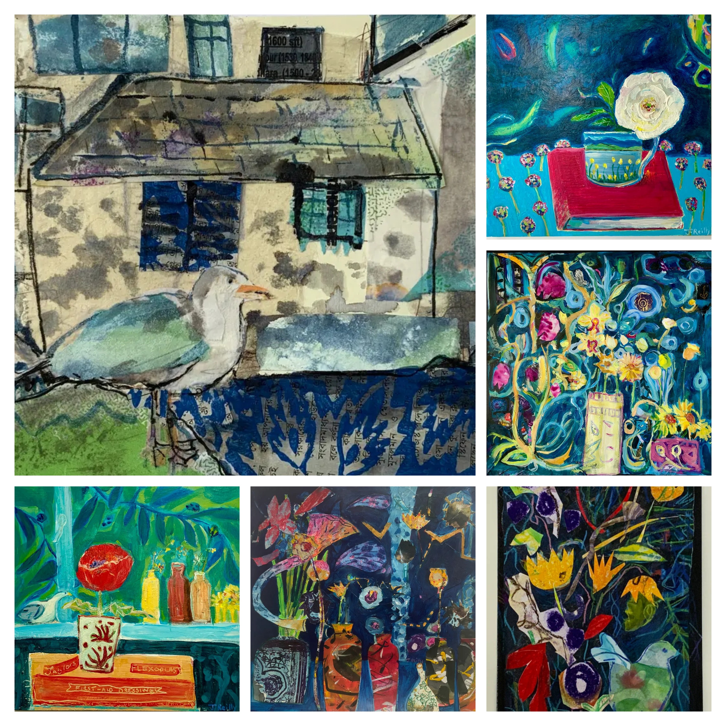 S K Stevens and Jane Reilly are artists who both trained as art therapists.This background lends itself to them both creating work with a passion for colour, story telling, emotion and a deep sense of place with expressive results.