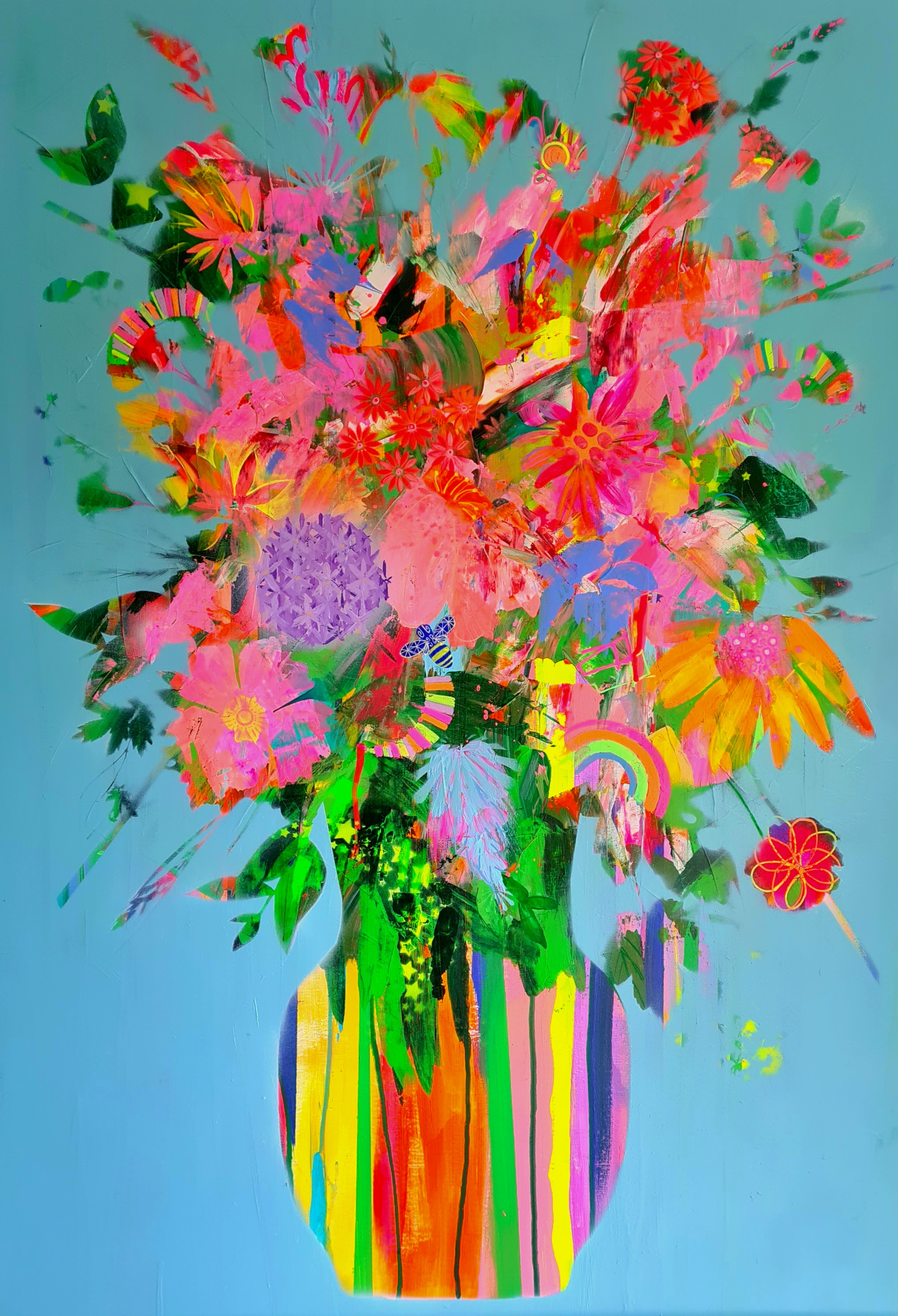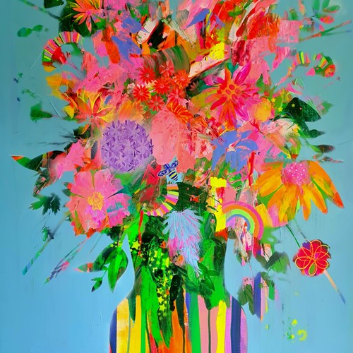 This is the second collaboration for Elizabeth and Eddie, following on from their well-received exhibition at Castle Park Art Centre last January. Elizabeth’s work is very much influenced by nature and her garden. She creates large format abstract flowers and botanicals using vivid colour combinations. Eddie works with steel using a force of individuality to create a rough elegance within his work, exploring the possibilities of manipulating and transforming the iron to make something aesthetically pleasing.