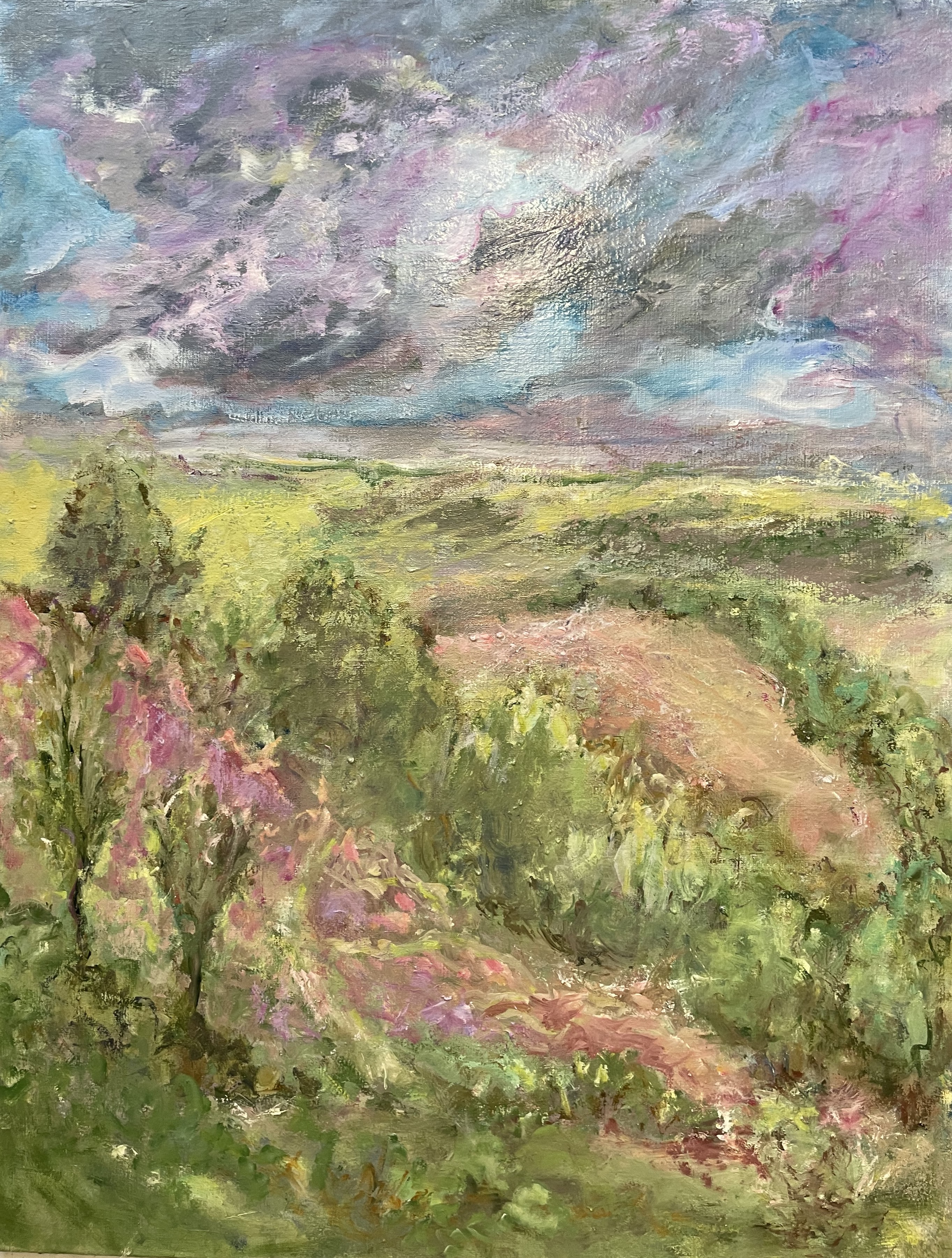 Paintings exploring light form a frieze of near and distant landscapes, with smaller pieces also inspired by sunshine and storms, the shadows of dawn and dusk and the illuminatory properties of light.