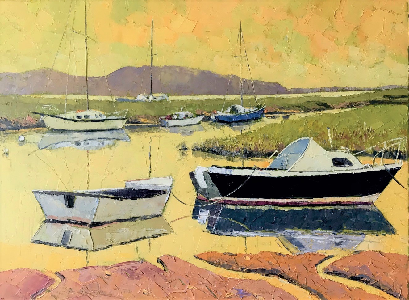 Jenny exhibits a bold use of palette knives in her impressionistic oils and acrylics, including North Wales, the Lake District, Cornwall, Wirral & North East Yorkshire.
