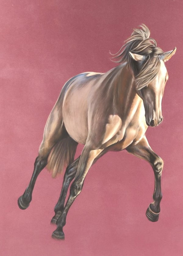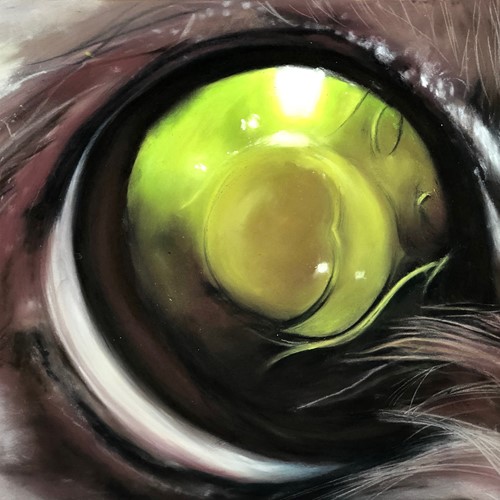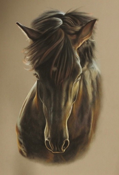 The challenge of the process comes from setting out the main features at the outset, to the use of hues and tones with the soft smooth bendable pastel in various forms, bringing them to life. My intention is to make a fairly accurate portrait but with greater depth, life, personality and richness of colour than can be achieved with a photograph.