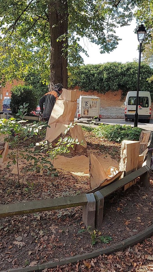The winter of 2020 brought much wet and windy weather to Cheshire and in late February a storm brought down a large old Beech tree in Castle Park. The park maintenance team moved quickly to make the area safe and, as I observed them cutting the trunk into manageable pieces, it occurred to me that one of the lengths might make a great piece of sculpture. Andy James, the Park Manager, agreed and the Contractor was persuaded to drop the piece off near to the Arts Centre with a Hiab lift.
