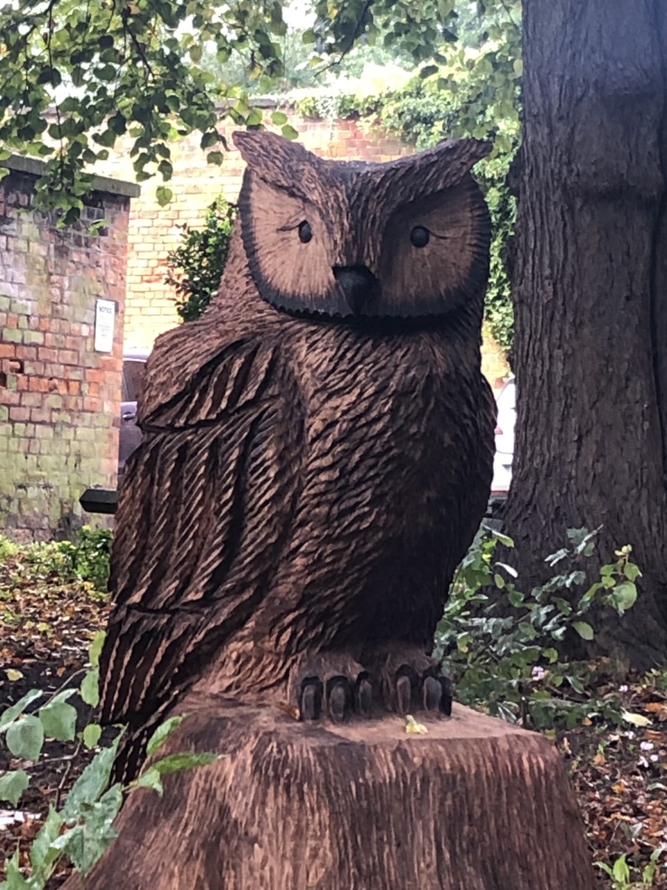 Happily, the Arts Centre had just received a legacy from an old supporter and so, if we could find an artist, we could cover the costs of the work. The Arts Centre has an extensive network in the Arts world, and we were able to locate a noted chainsaw sculptor, Tim Burgess, who agreed to undertake the task. His suggestion of an Owl met with universal approval.