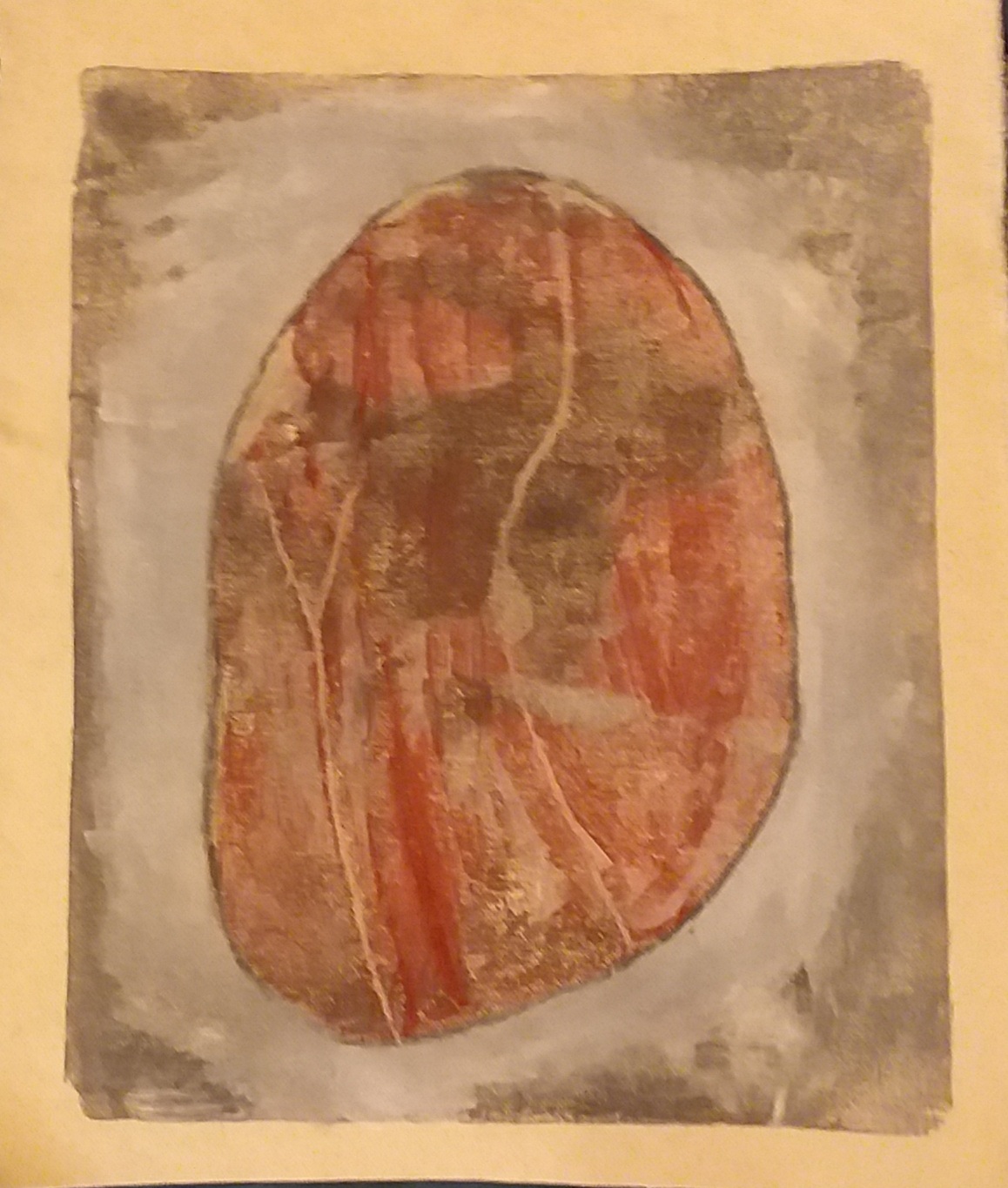 I turned to printmaking to reflect some of the interesting formations I had witnessed. I decided to approach this work in a particular way using unprimed canvas and a variety of printing techniques, the aim was to produce some free hanging canvases that would capture some of the texture of the rocks but also by their unfinished appearance some of the rustic wild quality of the island. Not refined and polished, but primitive and wild to give a true sense of place.