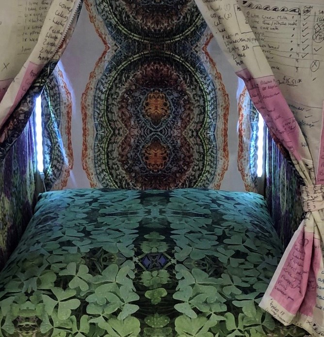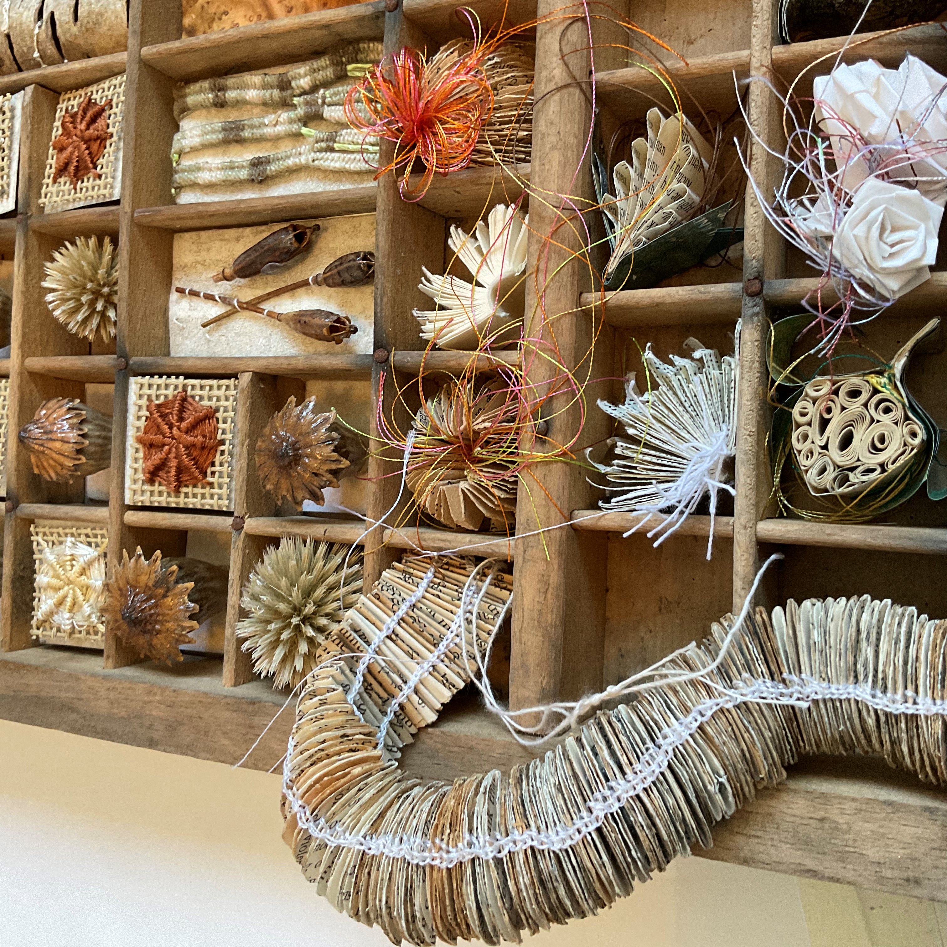 This exhibition is by Re-View Textile, a group of local textile artists who exhibit in the North West: Rachel James, Janet Wilkinson, Judith Railton, Sue Boardman, Viv Netherwood, Julie James Turner, Helen Cooper, Mary Bryning and Alison Bailey Smith.