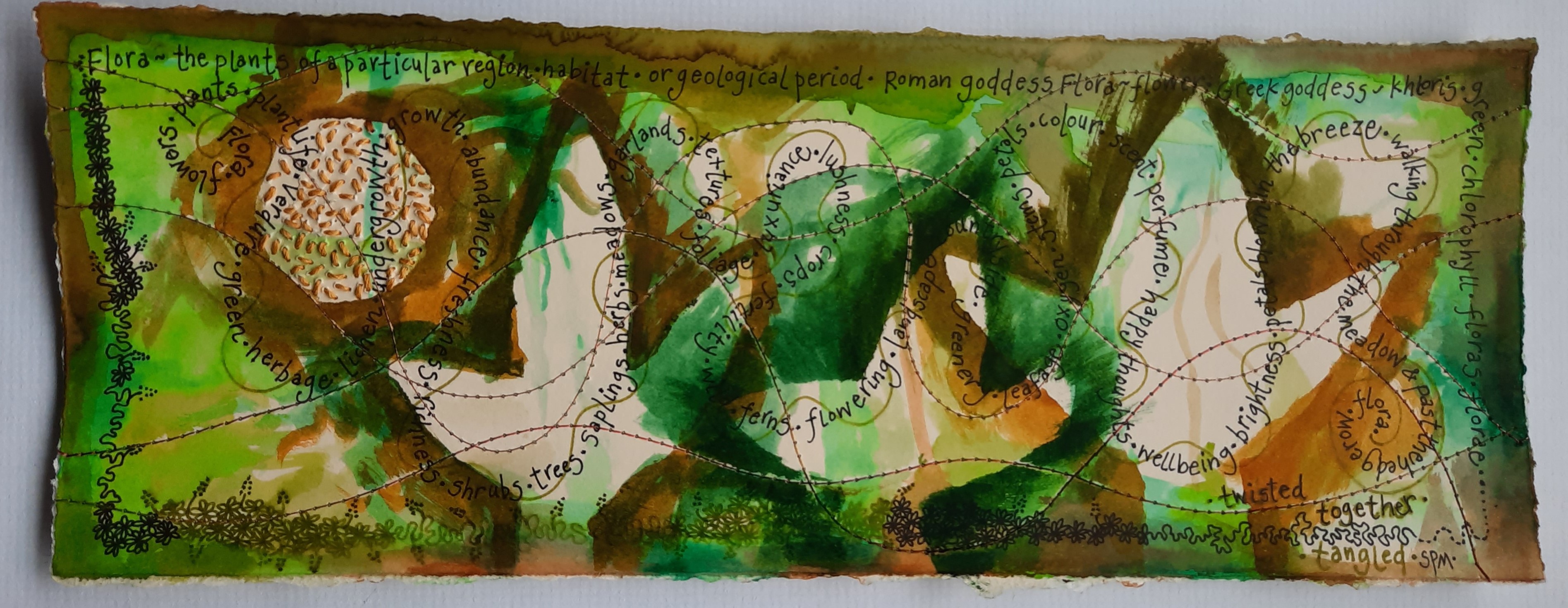 ‘Flora’ is an exhibition of work all inspired by the woodlands and parkland of Marbury & Anderton Country Park. The group normally meets at the Rangers’ Meeting Room at Marbury Park, which is part of the Northwich Woodlands and the Mersey Forest. Due to the Covid 19 restrictions meetings have not been possible, but social media has been used to keep in touch with each other concerning the work being produced.