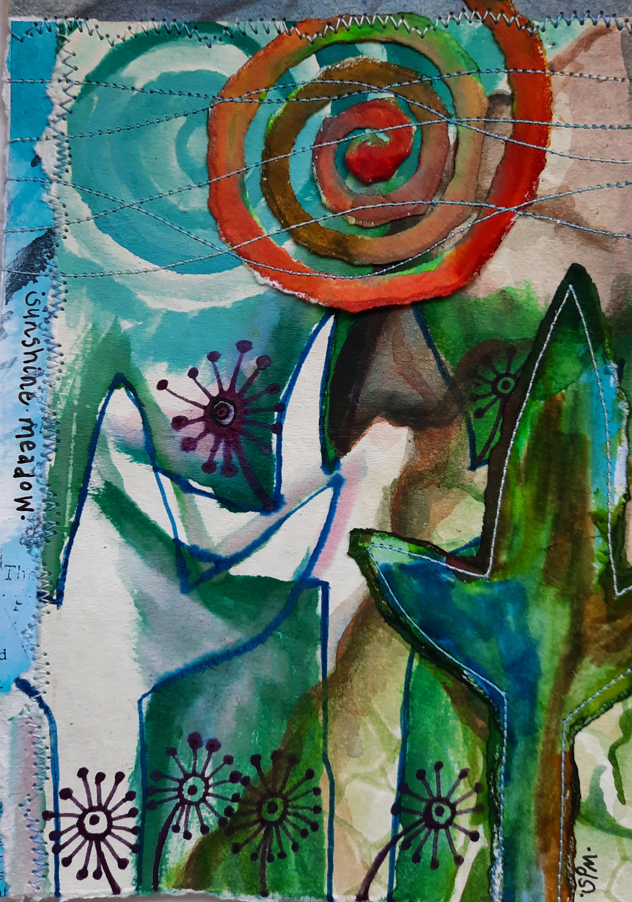 The regular weekly meetings provide inspiration and motivation for members who come from a variety of backgrounds, but have a common love of textiles. Current members are exploring; weaving, hand and machine embroidery, felt making, lino printing, wire work and mixed media textiles.